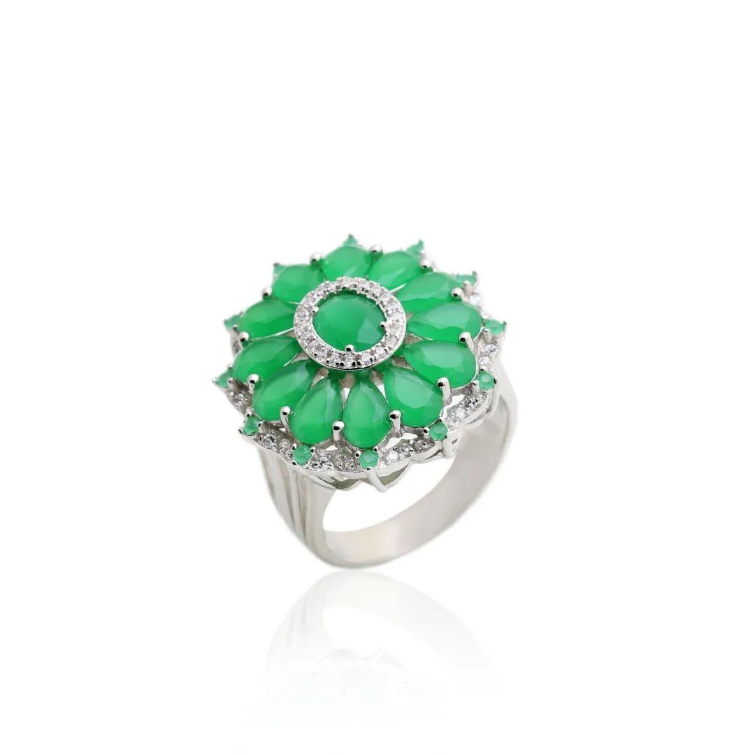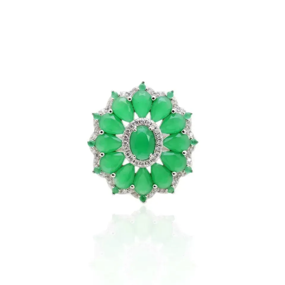 ANEL COM CRISTAL ESMERALDA - CRAVEJADO DE ZIRCONIAS - BANHO RODIO BRANCOConfira opiniões e avaliações de clientes!