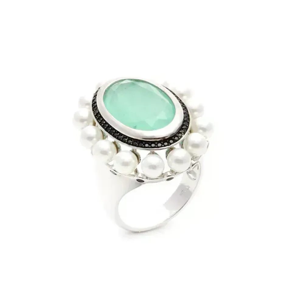 ANEL FUSION ESMERALDA E PEROLAS - BANHO RÓDIO BRANCOConfira opiniões e avaliações de clientes!