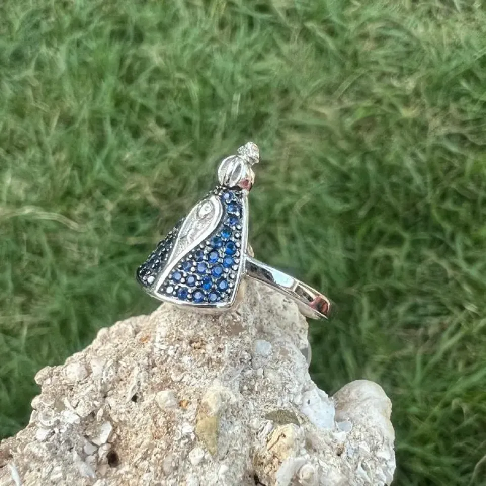 ANEL NOSSA SENHORA APARECIDA - MICROZIRCONIAS - PRATA 925Confira opiniões e avaliações de clientes!