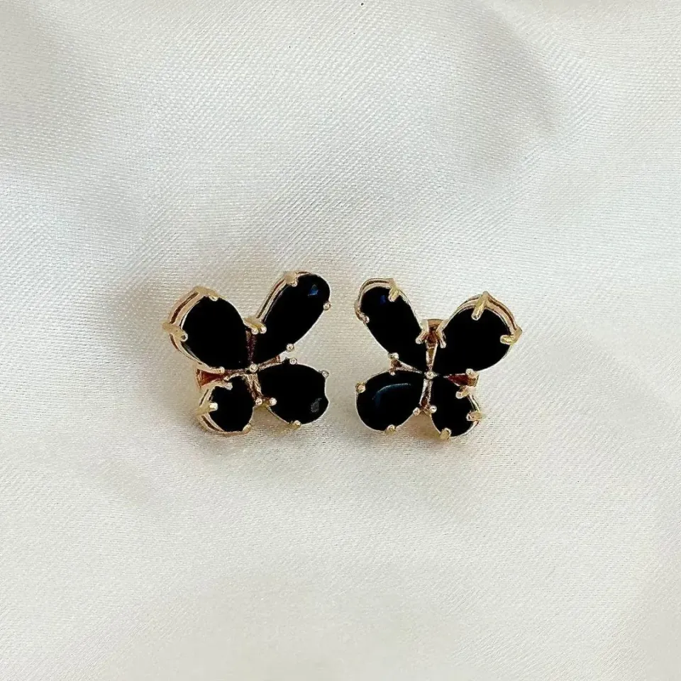 BRINCO CRISTAL ONIX - BORBOLETA - BANHO OURO 18KConfira opiniões e avaliações de clientes!