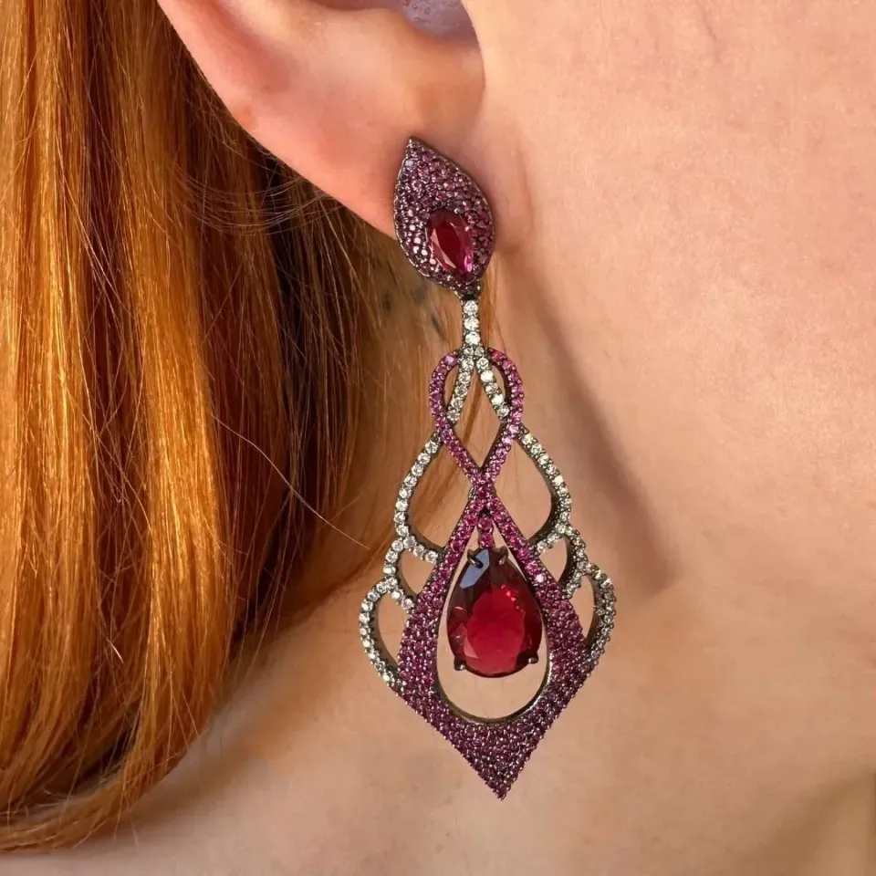 BRINCO CRAVEJADO ZIRCONIAS ROSAS - BANHO RODIO NEGROConfira opiniões e avaliações de clientes!