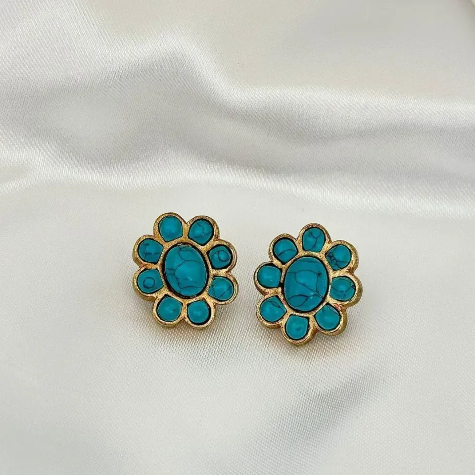 BRINCO FLOR NANO TURQUESA - BANHO OURO 18KConfira opiniões e avaliações de clientes!