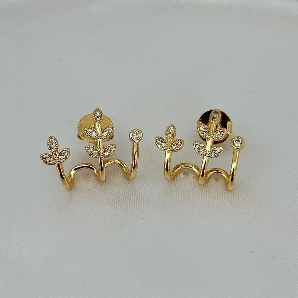 BRINCO FOLHAS - ZIRCONIAS BRANCAS - BANHO OURO 18KConfira opiniões e avaliações de clientes!