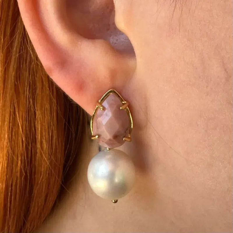 BRINCO GOTA DE PEDRA COM PEROLA - BANHO OURO 18KConfira opiniões e avaliações de clientes!