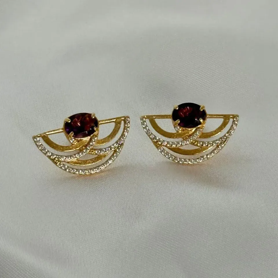 BRINCO LEQUE - PEDRA LILAS E ZIRCONIAS - BANHO OURO 18KConfira opiniões e avaliações de clientes!