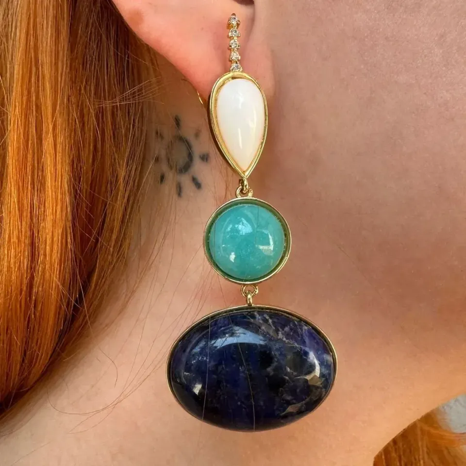 BRINCO PEDRAS NATURAIS AZUL E BRANCA - BANHO OURO 18KConfira opiniões e avaliações de clientes!