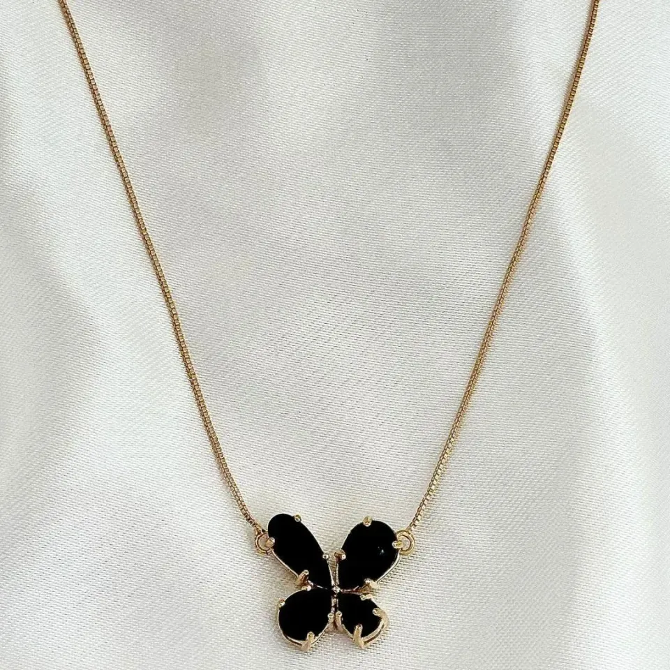 COLAR BORBOLETA - CRISTAL ONIX - BANHO OURO 18KConfira opiniões e avaliações de clientes!