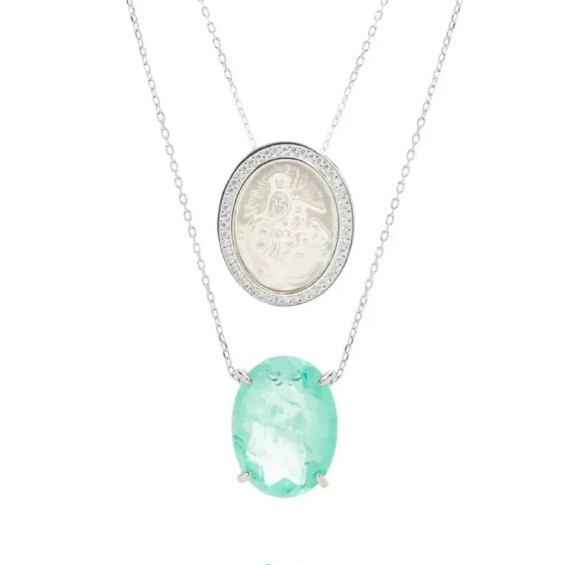 COLAR ESCAPULARIO - FUSION TURMALINA MADREPEROLA - BANHO RÓDIO BRANCOConfira opiniões e avaliações de clientes!