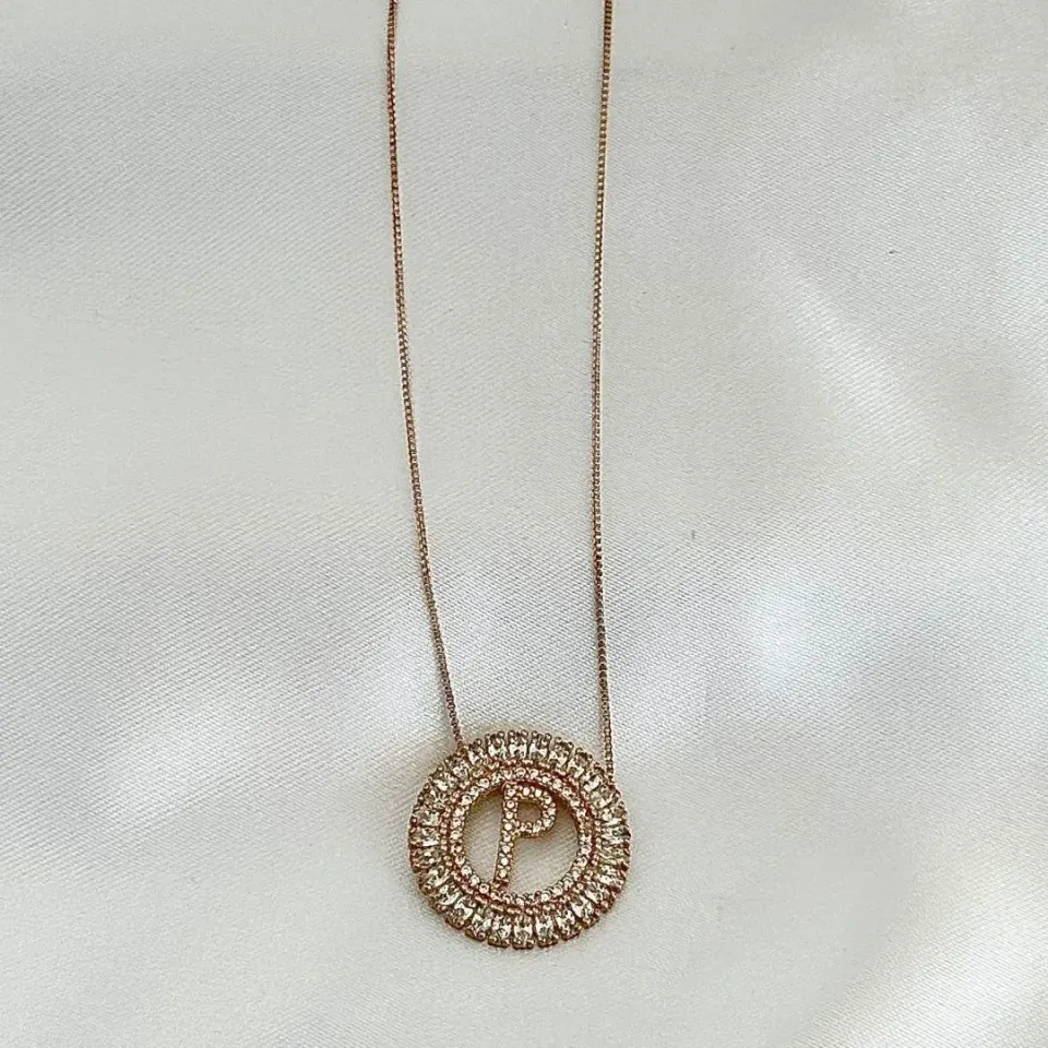 COLAR CRAVEJADO ZIRCONIAS BRANCA - LETRA P - BANHO OURO 18KConfira opiniões e avaliações de clientes!