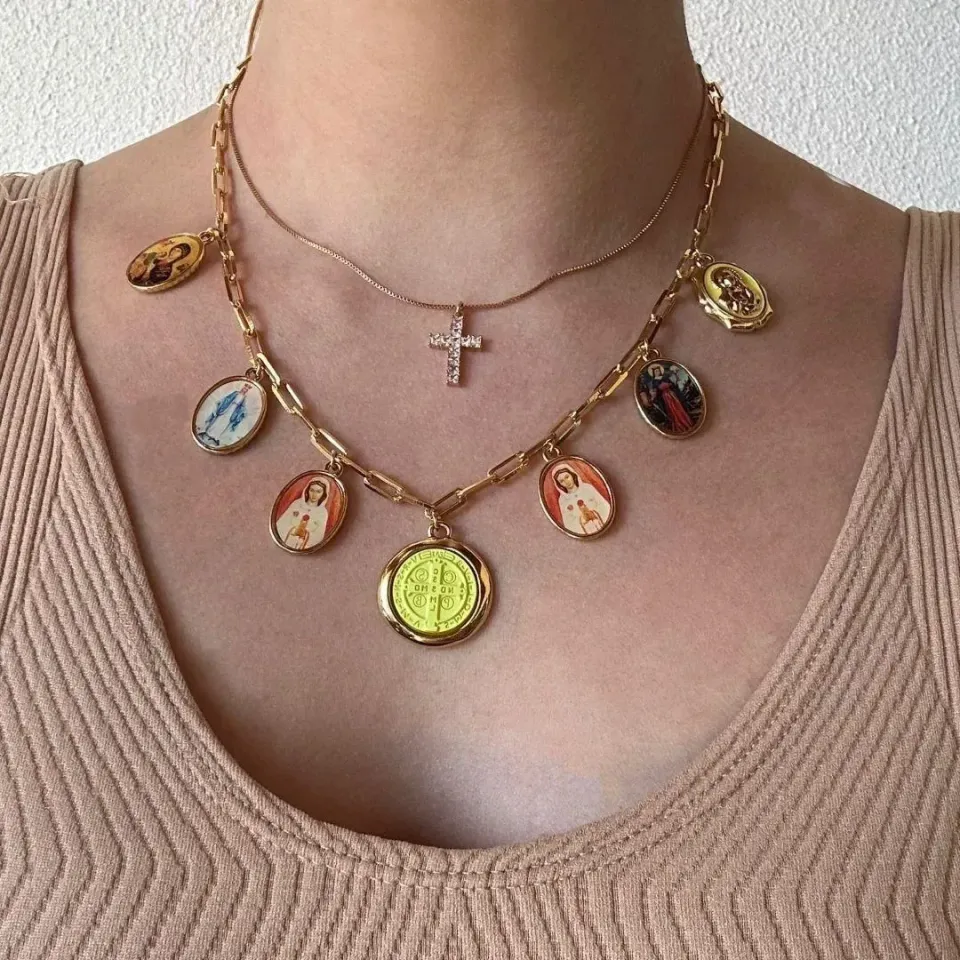 COLAR MEDALHAS SANTOS - BANHO DE OURO 18KConfira opiniões e avaliações de clientes!