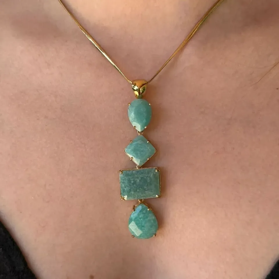 COLAR PEDRA AMAZONITA - BANHO OURO 18KConfira opiniões e avaliações de clientes!
