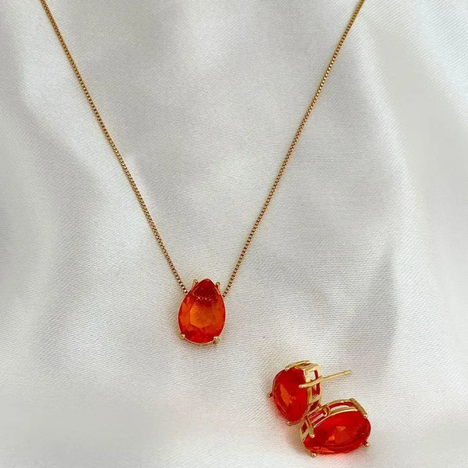 CONJUNTO GOTA LARANJA - BANHO OURO 18KConfira opiniões e avaliações de clientes!