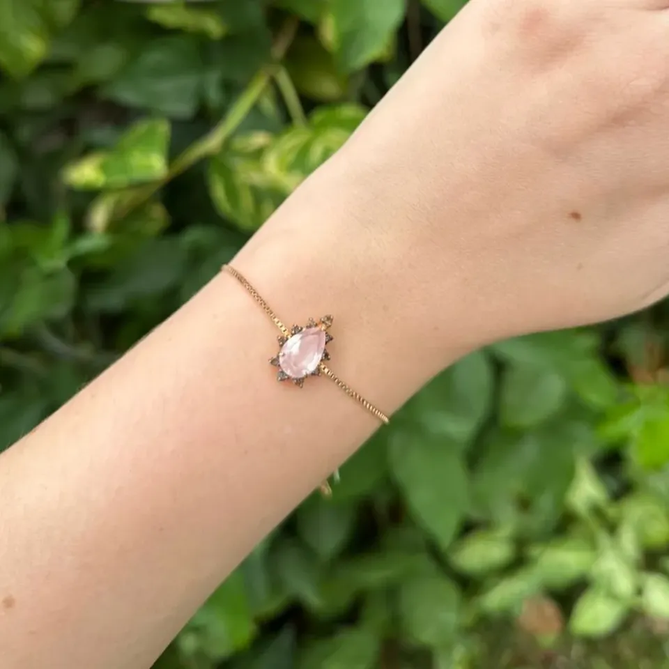 PULSEIRA REGULÁVEL - GOTA QUARTZO ROSA - BANHO OURO 18KConfira opiniões e avaliações de clientes!